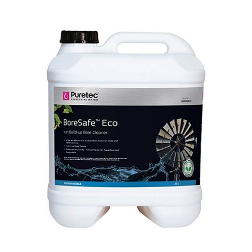 Puretec BoreSafe™ Eco is a non-corrosive, non-hazardous, biodegradable chemical designed specifically to break down the iron build-up in the bore itself, the bore pump and pipework. Boresafe™ Eco is the ideal choice for those seeking to minimise hazardous chemical use around their home or workplace.